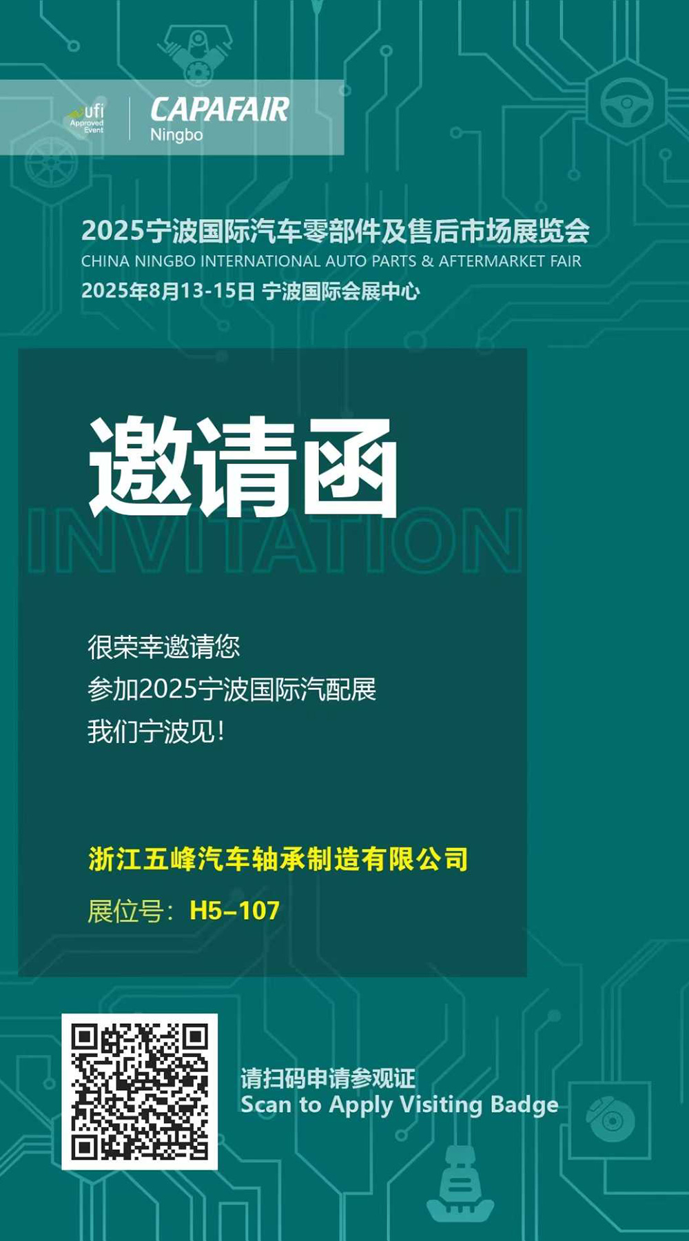 五峰轴承邀您参加2025宁波国际汽车零部件及售后市场展览会